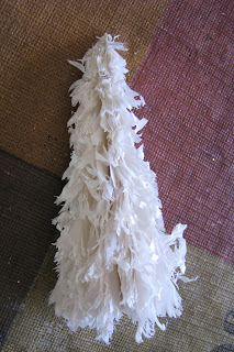 To make the trees I just kept folding a piece of tissue paper in halves until it was about the width I wanted and then I folded over a little edge on one side and stapled it. I cut the tissue at a diagonal for a rough tree shape and then made little snips at an angle.
